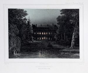 * ANONYME [REGNIER (Auguste) - CHAMPIN (J.J.)] Habitations des personnages les plus célèbres de France, depuis 1790 jusqu'à nos jours, dessinées par Auguste Régnier et lithographiées par Champin. 1 vol. in-4 oblong, relié ½ cuir de russie,...