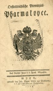 Oesterreichische Provinzial-Pharmakopee. Wien, Joh. Thom. Edlen von Trattnern, 1778, 8°, [10]-384-[18] p., pleine basane brune de l'époque (rel. usée avec manques, ex. fortement manipulé). Deux parties : 1. Th. Materia pharmaceutika, oder die...