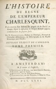 ROBERTSON. L'Histoire du règne de l'Empereur Charles-Quint, précédée d'un Tableau des progrès de la Société en Europe, depuis la destruction de l'Empire Romain jusqu'au commencement du seizième siècle. Ouvrage traduit de l'anglois....