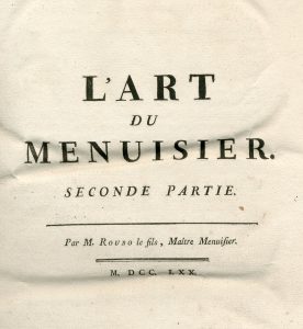 ROUBO (Jacques-André). L'Art du menuisier. Tome 2 seul. Paris, [Academie royale des Sciences], 1770, in-folio, pp. 149-452, planches 51 à 170 dont 23 sur double page et 1 dépliante, demi-veau rouge de l'époque, dos à 5 nerfs, titre doré (rel....