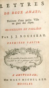 ROUSSEAU (Jean-Jacques). Lettres de deux amans, habitans d'une petite ville au pied des Alpes. Recueillies et publiées par J.J. Rousseau. [Aux faux titres : « Julie, ou La Nouvelle Héloïse ».] Amsterdam, Marc Michel Rey, 1761, 6 parties en 6...