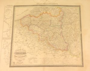 CHARLES (F.). Atlas de la Belgique. Dressé d'après les meilleurs matériaux, gravé, publié et lithographié par F. Charles. Brux., s.d. (vers 1845), in-plano, 10 cartes sur double page, montées sur onglet, contours en couleurs, demi-basane...