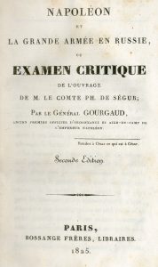 GOURGAUD (Général). Napoléon et la Grande Armée en Russie ou examen critique de l'ouvrage de M. Le Comte Ph. de Ségur. P., Bossange frères, 1825, 8°, demi-basane beige, dos lisse, pièce de titre, fleurons dorés (rel. défraîchie, dos...