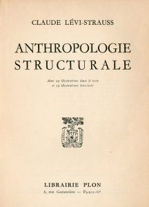 LEVI-STRAUSS (Claude). Anthropologie structurale. P., Plon, 1958, 8°, 454 p., figures in-texte, br. (brochage lég. relaché, 1 trait au bic en marge, petit pli au 1er plat de couv.). Envoi : "A Jean Pouillon, ce livre qui le met, un peu...