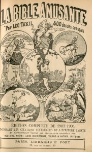 TAXIL (Léo). La Bible amusante. 400 dessins comiques. Edition complète de 1903-1904. P., Librairie P. Fort, 8°, 814 p. + catalogue de l'éditeur, demi-perc. bleu foncé à coins, titre doré. Ancien élève des Jésuites, Léo Taxil (1854-1907)...