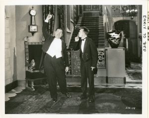 "Early to Bed" (1928). Ensemble de 8 photographies en noir réalisées pour le film de Emmett J. Flyn "Early to Bed" [Le Valet casse tout]. Photos destinées aux salles de cinéma pour la présentation du film. Format : de 21 x 25 cm. Comédie du...