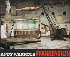 WARHOL.- "Andy Warhol's Frankenstein" (1973). Ensemble d'une douzaine de photographies en couleurs et de 14 reproductions photographiques réalisées pour le film d'horreur de Paul Morrissey et Antonio Margheriti, produit par Andy Warhol. Cachet du...