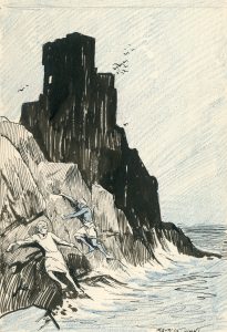 doré (les ill. sont marquées par une croix au crayon bleu par l'imprimeur). Ex. unique enrichi des 9 dessins originaux à l'encre de Chine rehaussés de crayon bleu, tous signés par l'artiste (notes au crayon en marge pour l'impression).