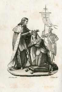 rouge illustrée de motifs dorés, tranches dorées, étui recouvert du même tissus (étui sali).