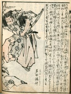 KATSUCHIKA TAITO II (actif de 1810 à 1853). Eiyu zue (Images de loyauté et de bravoure). Daté 1825, 1 vol. complet, dim. : 16 x 22 cm, 2 pages de préface, 1 frontispice et 25 pages de texte avec illustrations.