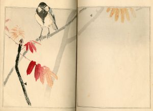 WATANABE SETEI (1851-1918). Ehon Kacho Gafu. Tokyo, Editeur Okura Shoten, Meiji 36 (1903), dimensions : 17,4 x 24,8 cm, 22 planches d'oiseaux et de fleurs, couverture verte avec papillons et lignes argents, cousu cordonnet orange (salissures et...