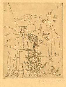 JESPERS (Floris). "Klemmen voor zangvogels" (1930). Ensemble de 2 eaux-fortes en noir tirées sur simili-Japon, signées au crayon et montées individuellement sous passe-partout et cadre doré en bois. Dim. cadre : (2 x) 36,5 x 26,5 cm ; sujet : (2...