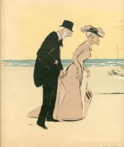 (1863-1934) occupe [...] la place difficile de chroniqueur attitré du Tout-Paris de 1900 ; il collabore régulièrement au « Figaro » et à « La Vedette », journal de Marseille. On le rencontre là où se regroupent les personnalités mondaines de cette époque : chez Maxim's, à Longchamp, à Deauville, dans les cercles et les casinos, son carnet de croquis à la main. Pour saisir ses victimes, il lui faut des mois d'affût secret, des dizaines de croquis qui se corrigent et se complètent. De là un extraordinaire rendu, non seulement des visages mais surtout de la démarche et de l'attitude de ses modèles" (http://www.universalis.fr/encyclopedie/georges-goursat-dit-sem).