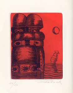 FRANCK (Paul). Semaphores illustré de 3 gravures par l'auteur. Braine-le-Comte, Lettera Amorosa, 1974, petit 4°, en f., couv. impr. Edit. orig. tirée à 50 ex. num. sur vélin d'Arches. 1/47 ex. avec les " eaux-fortes en coul. signées et...