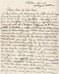 JEFFERYS (Marcel). Lettre autographe, signée, adressée au peintre Georges Morren, datée de Londres, 29 janvier 1919 (10 p. 4°, enveloppe timbrée et déchirée jointe). Jefferys a passé la guerre 14-18 en Angleterre. Il parle d'une manière...