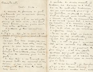VAN DE VELDE (Henry). Lettre manuscrite, signée "Henry", adressée à [Madame Emile Claus], non datée (vers 1890-1894). (3 p. 8°). "O, comme les femmes se font facilement une mauvaise opinion des hommes. Mr [Georges] Morren est un misérable...