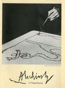 ALECHINSKY (Pierre). "Alechinsky à l'imprimerie" [Affiche réalisée en 1975 pour l'exposition itinérante d'Alechinsky]. Lithographie originale en couleurs tirée par Arte à Paris. Texte imprimé au verso. Première édition. Dim. : 60 x 84 cm,...