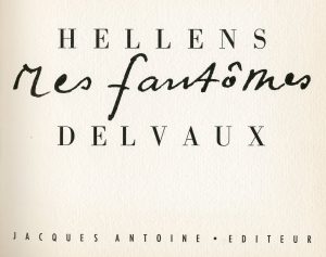 DELVAUX.- HELLENS (Franz). Mes fantômes. Illustrations de Paul Delvaux. Brux., Jacques Antoine, 1971, 8° oblong, pleine toile noire imprimée en blanc, gardes de papier rouge. Texte manuscrit de Franz Hellens en fac-similé et 7 dessins hors texte...