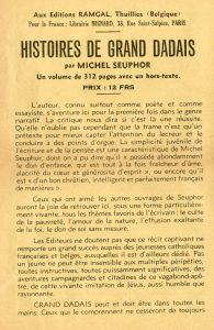 SEUPHOR (Michel). Histoire de grand dadais. Thuillies (Belgique), 1938, in-12, br., f. d'errata collé au contreplat ainsi qu'une reproduction de son portrait et 1 f. portant une dédicace de Seuphor à Marcel Lobet. Edit. orig./ IDEM. Poésie et...
