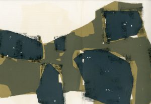 UBAC.- "Derrière le Miroir". N° 74-75-76. Raoul Ubac. P., Maeght, 1955, in-folio, en f., couv. illustrée. Texte de Jean Bazaine, Yves Bonnefoy et Georges Limbour. Complet des 3 lithographies originales en couleurs de Raoul Ubac./ "Derrière le...