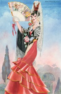 BRUNELLESCHI.- MERIMEE (Prosper). Carmen. La Vénus d'Ille. Mateo Falcone. L'Enlèvement de la Redoute. Le Vase étrusque. La Dame de Pique. Illustrations en couleurs de Brunelleschi. P., H. Piazza, 1948, petit 4°, 247 p., br. (couv. lég....