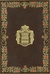 fleurs mosaïquées rouge, dos à nerfs en partie encadré d'un filet doré, guirlande de roses mosaïquées, auteur et titre dorés, filet et double filet dorés alternés sur les coupes, reliure doublée de soie au motif floral, encadrement de maroquin de deux doubles filets dorés et de roses mosaïquées rouge reliées par un pointillé doré, double garde de même tissu et en papier, tranches dorées, armoiries dorées sur les plats d'un duc de Massa, soit Jean Louis Napoléon Eugène (1875-1946), 4e duc de Massa, ou son fils Alexandre Alfred André (1905-1962), 5e duc de Massa, descendants de Claude Ambroise Régnier (1746-1814), inhumé au Panthéon, 1er duc de Massa et de l'Empire, couv. et dos conservés, étui bordé de maroquin (coup dans le plat arrière de l'étui, sans conséquence) (reliure signée Canape et Corriez). Édition illustrée de 35 compositions en couleurs. Tiré à 950 ex. num. 1/25 de tête sur Japon impérial (n° 1), accompagné de deux suites, une en noir et une en couleurs et d'une aquarelle originale signée de Henri Cassiers. Somptueux exemplaire.