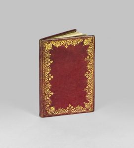[PIQUET]. Almanac ou compte fait du jeu de Piquet depuis 10 jusqu'à 3000 points, au Liard et demi. Dédié au Beau Sexe. s. l. n. d., (vers 1790). In-16 maroquin rouge, encadrement doré, doublé papier doré (Reliure de l'époque).
