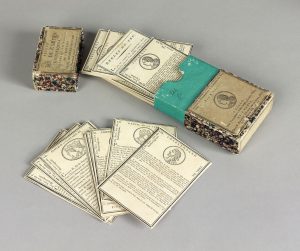 [JOUY (Victor Joseph Etienne)]. Second jeu de cartes historiques contenant un abrégé de l'histoire de la monarchie française. Lille, Vanackere; Paris, Nicolle, "à la librairie stéréotype", début XIXe s. Règles et 48 cartes de 10 x 8 cm. dans...