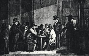 14 pp. y compris le frontispice, 1 planche (figure de damier), 2 ff. n. ch., 100 planches portant chacune 2 figures de damiers et explications en regard., 2 ff. n. ch. (titre et errata) ÉDITION ORIGINALE. Frontispice montrant des joueurs au café Manoury. Ce café célèbre à l'époque romantique se situait à l'angle du quai du Louvre et de la rue de l'Arbre Sec à l'emplacement actuel de la Samaritaine. Il fut le rendez-vous de joueurs de dames parisiens pendant les XVIIIe et XIXe siècles ; Rousseau, A. Piron et Danton venaient y jouer. C'était un des premiers cafés parisiens dont les origines remonteraient au XVIIe siècle. En 1766 il fut acheté par Manoury dont il portera le nom par la suite. La gravure montre le café avec un décor modeste, avant sa luxueuse réfection avec lustres et miroirs dont A. Éverat se plaint dans Le Palamède en 1839 regrettant la simplicité de l'ancien décor. Alliey p. 8 nous apprend que les joueurs représentés sur ce frontispice sont les célèbres Blonde et Clérambault, inventeurs de nombreux coups. 2 ff. intervertis (erreur de foliotation). Exemplaire frais, à l'état de parution.