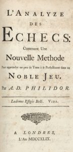 PHILIDOR (A.-D.) [François André DANICAN dit]. L'analyze des échecs : contenant une nouvelle méthode pour apprendre en peu de tems à se perfectionner dans ce noble jeu. Londres, 1749. In-8 veau brun marbré, dos à nerfs orné, pièce de titre...