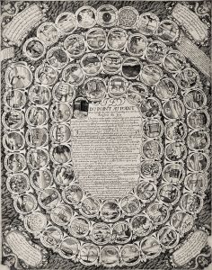 JEU DU POINT AU POINT pour la fuite des vices et la pratique des vertus. Dijon, Le Bossu, 1640. Impression en noir sur vergé (66 x 52 cm.)
