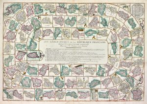 MAUBORGNE (J. N.). JEU GÉOGRAPHIQUE de la République française présenté à la Convention Nationale. Paris, Basset, (vers 1795). Planche en couleurs de 81 x 57 cm.