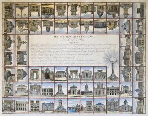 Jeu des monumens français de la ville de Paris. Paris, Langlumé, vers 1810. 48 x 59 cm. (feuille de 54 x 67 cm.)