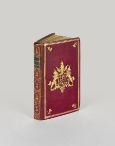 [ALMANACH] – Etrennes galantes ou l'instant heureux de Cythere dédié aux deux sexes. Paris, Desnos, 1781. In-18 maroquin rouge, armes au centre des plats, fleurons aux angles, encadrement d'un triple filet doré, dos lisse orné, tranches...