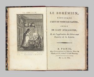 172 pp. et 1 frontispice. Ouvrage rarissime inconnu des bibliographies. Outre l'art de tirer les cartes, notamment grâce au Petit Eteilla, et de deviner les numéros de loterie, ce manuel enseigne plusieurs tours de prestidigitation à faire avec les cartes. Le frontispice montre une dame chez le cartomancien.