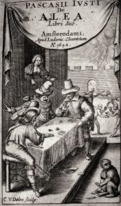 JUSTUS (Pascasius) [JOOSTENS (Paschier)]. De Alea libri duo. Amsterdam, L. Elzevier, 1642. In-18 vélin ivoire, titre manuscrit au dos. (Reliure de l'époque).