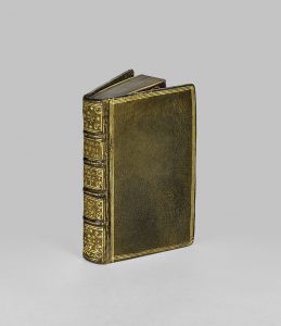 JUSTUS (Pascasius) [JOOSTENS (Paschier)]. De Alea libri duo. Amsterdam, L. Elzevier, 1642. In-18 maroquin olive, encadr. triple filet doré, dos à nerfs orné, dent. intér., tranches dorées (Reliure du XVIIIe siècle).