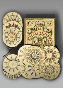 [CINÉMA]. Phénakisticope. Paris, Junin, vers 1850. Dans une boîte en cartonnage de 25,5 x 25 cm. couvercle recouvert d'une lithogr. en couleurs, encadrement galon orné.
