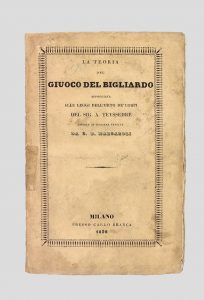 MARGAROLI (Gio. Bat.) La teoria del giuoco del bigliardo appoggiata alle leggi dell'urto de' corpi del Sig. A. Teyssèdre. Milano, L. Nervetti, 1830. In-8 broché, couverture imprimée.