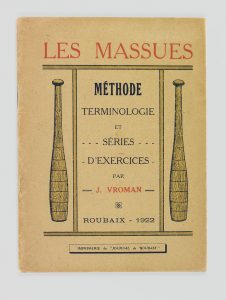 VROMAN (J.). Les massues. Méthode, terminologie et séries d'exercices. Roubaix, impr. du Journal de Roubaix, 1922. In-12 broché, couverture illustrée.
