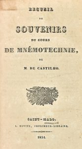 [CASTILHO (J.-F. et A.-M. de)]. Recueil de souvenirs du cours de mnémotechnie de M. de Castilho. Saint-Malo, Hovius, 1831. In-8 demi-basane fauve, dos lisse orné, titre en mar. noir, tranches marbrées (Reliure de l'époque).