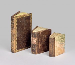 L'ORACLE DES AMANS ou les horoscopes de l'amour mis en rébus... Lille, Castiaux, impr. Bloquel, s. d. (vers 1820). In-32, basane brune de l'époque. frontispice, 3 ff., 154 pp. de rébus, (2 pp.), 12 ff. d'explication des rébus. – PEOPLE OF ALL NATIONS à useful toy for girl or boy. London, Darton and Harvey, 1806. In-32, demi-basane brune de l'époque. 64 ff. n. ch., 26 planches en noir in-texte. Bel abécédaire miniature sur le thème des habitants des nations du monde. – NOUVELLE CLEF DES RÉBUS ouvrage propre à faciliter la lecture des petits symboles... suivi de la règle du jeu des rébus. Paris, Delarue, Lille, Castiaux impr. Bloquel, s. d. (v. 1820). In-16, basane brune, décor de rosaces à froid sur les plats, encadr. guirl. dorée, dos lisse orné, tr. jaunes. (Reliure de l'époque) 65 ff. n. ch. Bel exemplaire de ce recueil de 65 rébus dans une reliure romantique.