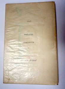 Artaud (Antonin). « Le théâtre de Séraphin ». Ed. L'air du temps, sans date (1948), in-12 broché, couverture souple d'édition rempliée. 52 pages. Exemplaire numéroté sur Arches. Parfaite condition