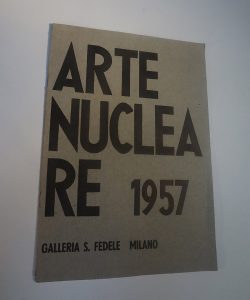 Arte Nucleare, catalogue, Galleria San Fedele, Milan, 1957. Plaquette in-4 agrafée sous couverture imprimée, non paginé (8pp. + couv.) Baj, Bertini, Bemporad, Dangelo, Klein, Manzoni, a. et G. Pomodoro, Rossello, Sordini, Verga, Jorn et Vandercam...