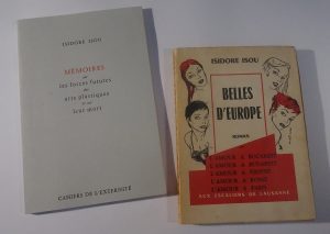 Isou (Isidore) « Belles d'Europe ». Aux escaliers de Lausanne. 1950, in-12 broché, couverture illustrée. 218 pages. Edition Originale. Bon exemplaire. Joint / Isou (Isidore). « Mémoires sur les forces futures des arts plastiques et sur leur...