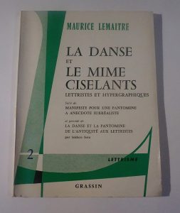 Lemaitre (Maurice), « La danse et le mime ciselants, lettristes et hypergraphiques », Grassin, 1960, in-12 broché. Hors texte à l'impression bleutée. Bel exemplaire. Edition originale
