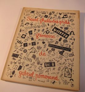 Pomerand (Gabriel), « Saint ghetto des prêts. Grimoire de Gabriel Pomerand ». O.L.B éditions, 1950, grand in-4 broché, couverture largement illustrée en noir. Non paginé. Préface de Jacques Baratier. Une fine trace sombre en bordure...