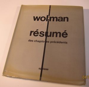 Wolman (Gil Joseph), « Résumé des chapitres précédents », Ed. Spiess, 1 981 . Petit in-4 broché, sous couverture d'édition à rabats. 220 p. Importante iconographie en noir et blanc. Défaut de pelliculage en bords de plats légèrement...