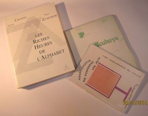 Henri Chopin : « Die Konferenz von Jalta, Freibord », 1986, signé par Henri Chopin (en ang et all) + Henri Chopin : Les riches heures de l'alphabet, Traversière, 1 993, un des 50ex sur chiffon Rives, signé par Chopin et Zumthor, avec un poème...