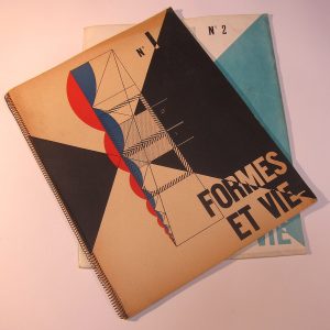 « Formes et vie » (revue) n°1 (1951) et n°2 (1952) seules parues, couverture d'après un dessin de Le Corbusier, reliure spirale pour le numéro 1 et broché pour le numéro 2, revue trimestrielle de synthèse des arts ; comité de patronage : Le...